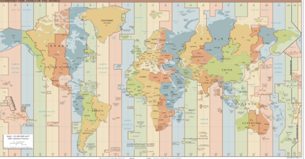 According the Coordinated Universal Time definition, the world is partitioned into diverse areas of more or less regular stripes, for which the same local time is used: