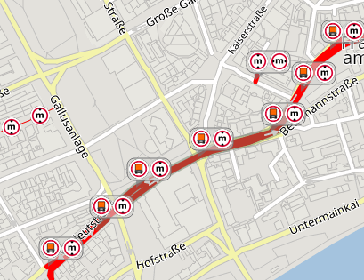 As for the routing use case these themes can be combined, individually selected and prioritized. By means of client-side requests it can be defined which layers are to be visualized on the map.