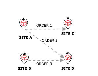 Consider following situation: There are two depot sites "Depot A" and "Depot B". Each of those depots has a fleet consisting of two vehicles and a set of pickup and delivery orders assigned to it.